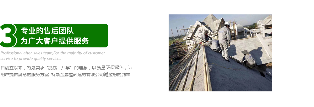 公司實力:山東特晟金屬屋面建材有限公司為位于山東省臨沂市莒南縣經濟開發區,本公司是科研、生產、設計銷售于一體金屬屋面建材生產企業。業務范圍:公司主要生產和銷售金屬彩石瓦、PVC落水管、鐵釘、地板磚等,擁有自營進出口權,產品廣銷東南亞、南亞、西亞、非洲以及歐美等地區。品牌競爭:我們以規模化生產為前提,公司依托穩定技術和裝備,以技術創新、技術研發優化為后盾,利用公司的自營進出口經營權,充分采購整合資源,使“特晟”彩石金屬瓦受到歡迎。質量保障:公司堅持“技術研發”,嚴格控制質量環節,為“特晟”彩石瓦提供了強有力的質量保障。客戶服務:作為“彩石瓦”生產廠家,特晟一直把“客戶滿意度”放在心中。建立以售前、售后完整的服務體系,快速的為客戶提供一系列的“解決方案”?!?